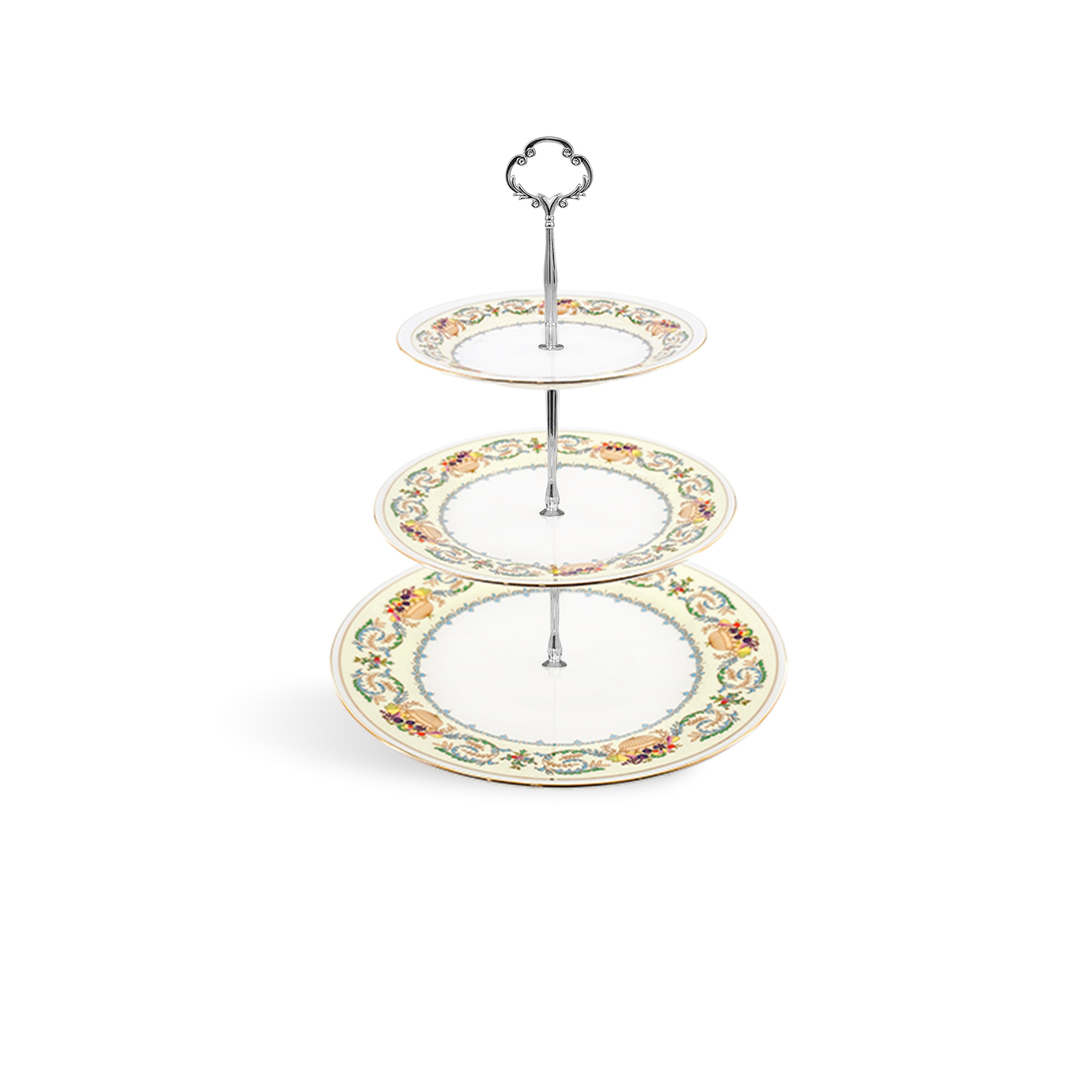Paired with elegant Western scrolls, it presents a feast where harvest meets grandeur. Gold rims add an extra touch of refinement.