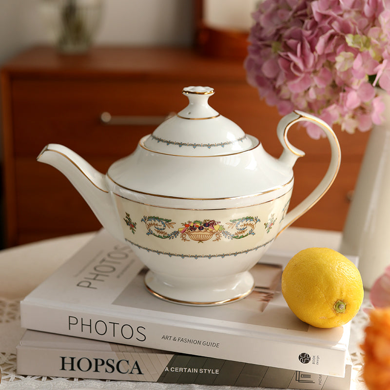 Paired with elegant Western scrolls, it presents a feast where harvest meets grandeur. Gold rims add an extra touch of refinement.