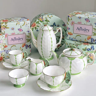 Introduced in October 1931, the ‘Tulip’ shape features elegant tea and coffee sets with tulip embossments and butterfly-shaped handles. Known for its delicate design and fine painting, it reflects the era's charm. The design, registered no. 765789, was favored by Queen Mary, with some pieces marked "As Supplied to H.M. the Queen."