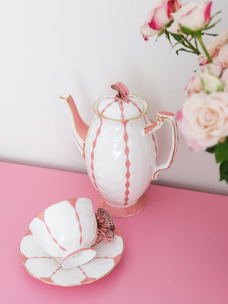 The Butterfly Series, designed in 1931 for Queen Victoria and Queen Mary, features tulip-shaped cups with butterfly handles, inspired by the royal garden.It’s marked