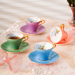 Colored Glaze Lily of the Valley Corset Tea Cup and Saucer-Purple