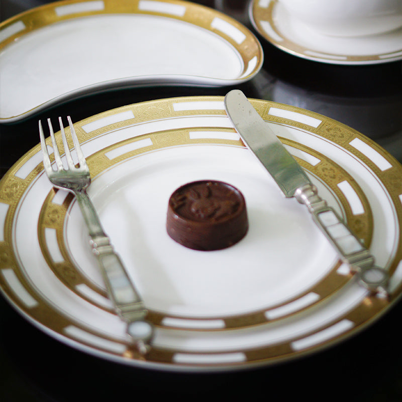 The 24K relief gold craftsmanship combines the characteristics of sculpture and painting, boasting both rich colors and a pronounced three-dimensional effect. The hand-painted gold detailing on the rim and handle is executed with a smooth and flowing finesse, symbolizing a noble and prestigious status. The collision between the pristine white bone china and the 24K gold creates an aura of elegance and sophistication, adding a unique touch of decoration to the dining table on special occasions.